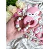 Růžové jako západ slunce, jemné jako ranní rosa – takové je toto kousátko s roztomilou lištičkou! Silikonové kousátko ve stylové kombinaci bílých, růžových a jemně béžových korálků.