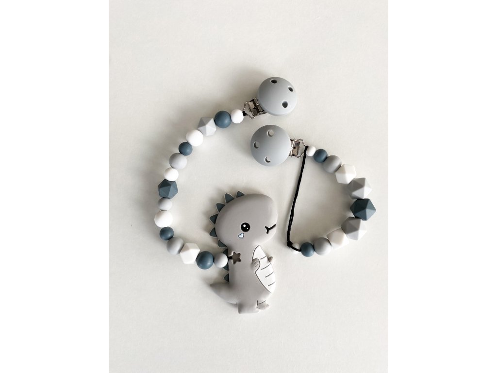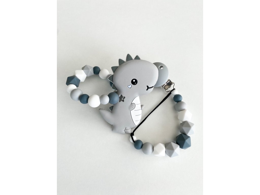 Sada 2ks Dino šedo bílá kousátko do ruky a klip na dudlík