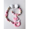 Tato kouzelná sada s růžovou lištičkou přináší pohádkový svět do každého dětského kočárku! Silikonový klip na dudlík a kousátko v pastelových odstínech růžové- bílé a a béžové barvy, jsou nejen stylové, ale také praktické a bezpečné pro vaše malé princezny.